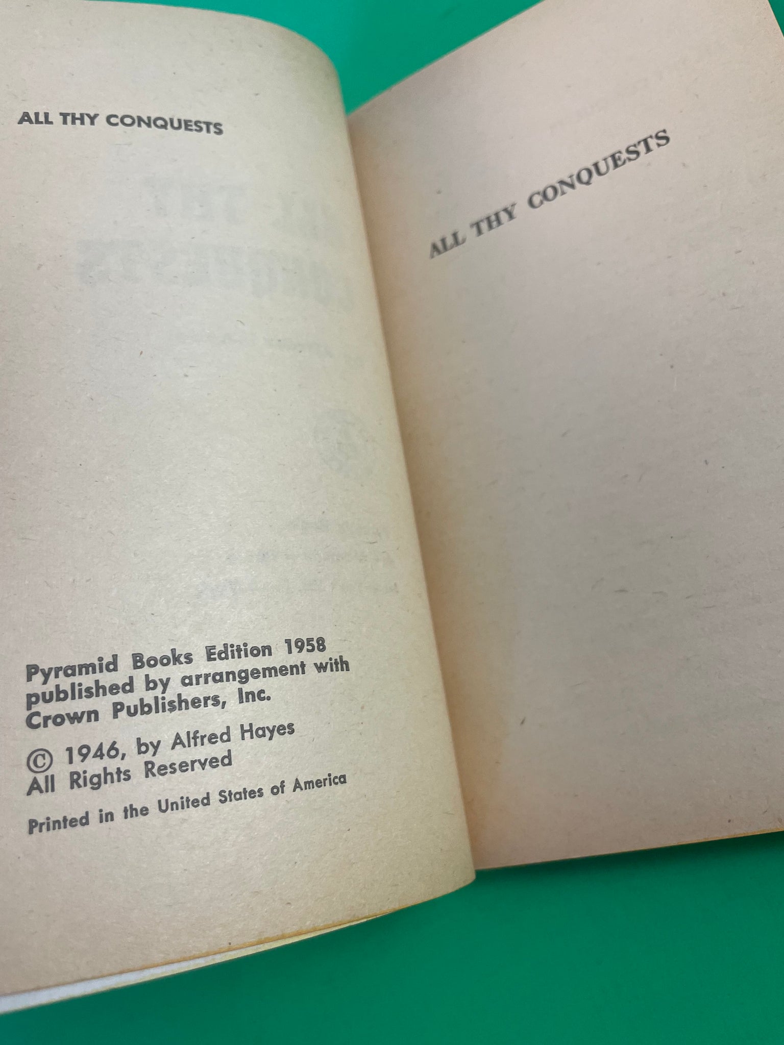 All Thy Conquests by Alfred Hayes Vintage 1958 Pyramid Paperback GIs Rome PB