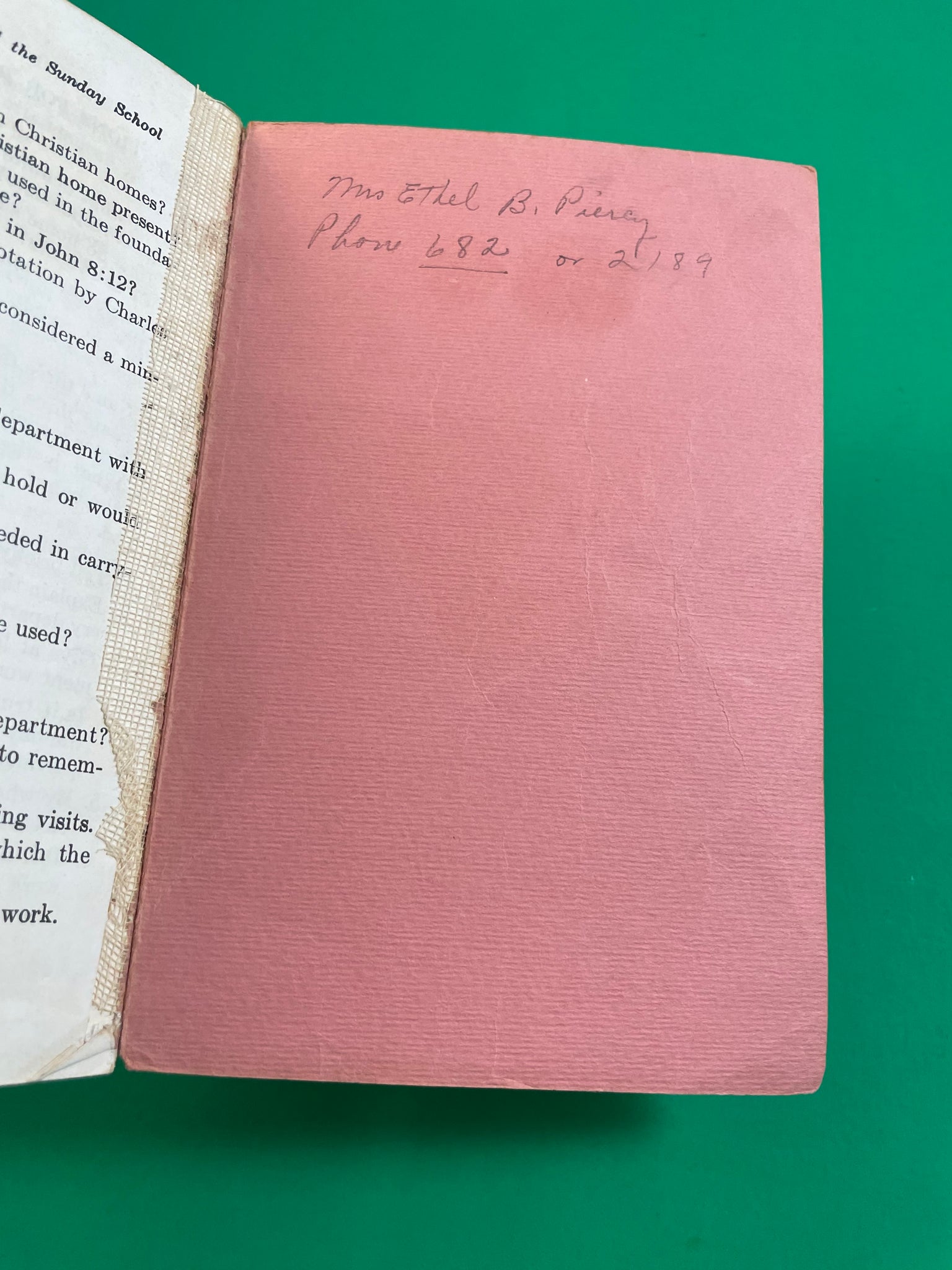 Anything else of note: some foxing/discoloring, spine wear, pencil inside back cover, page 3/4 is missing, pencil note on one page.