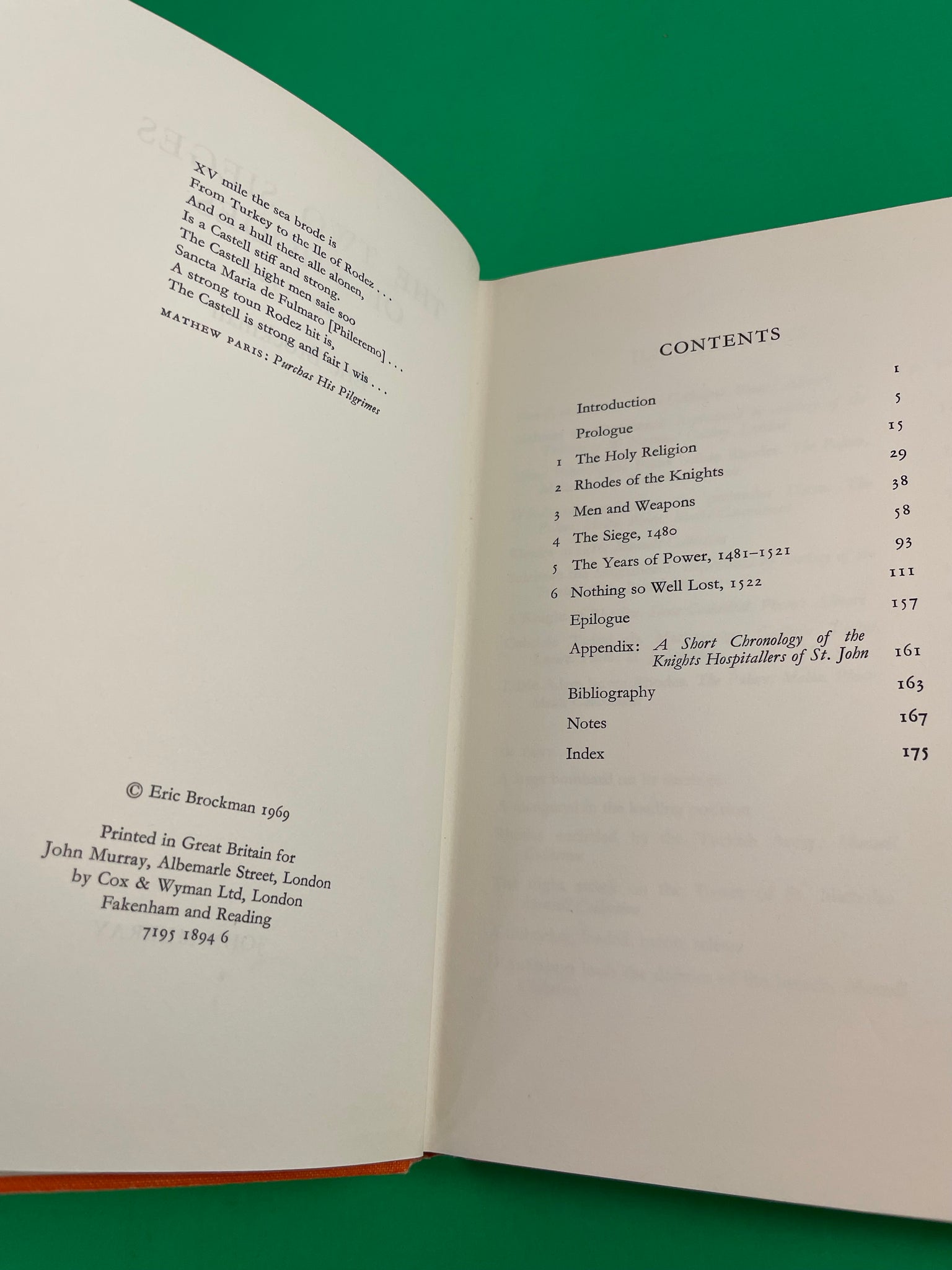 The Two Sieges of Rhodes 1480-1522 Eric Brockman 1969 Vintage Crusaders Knights