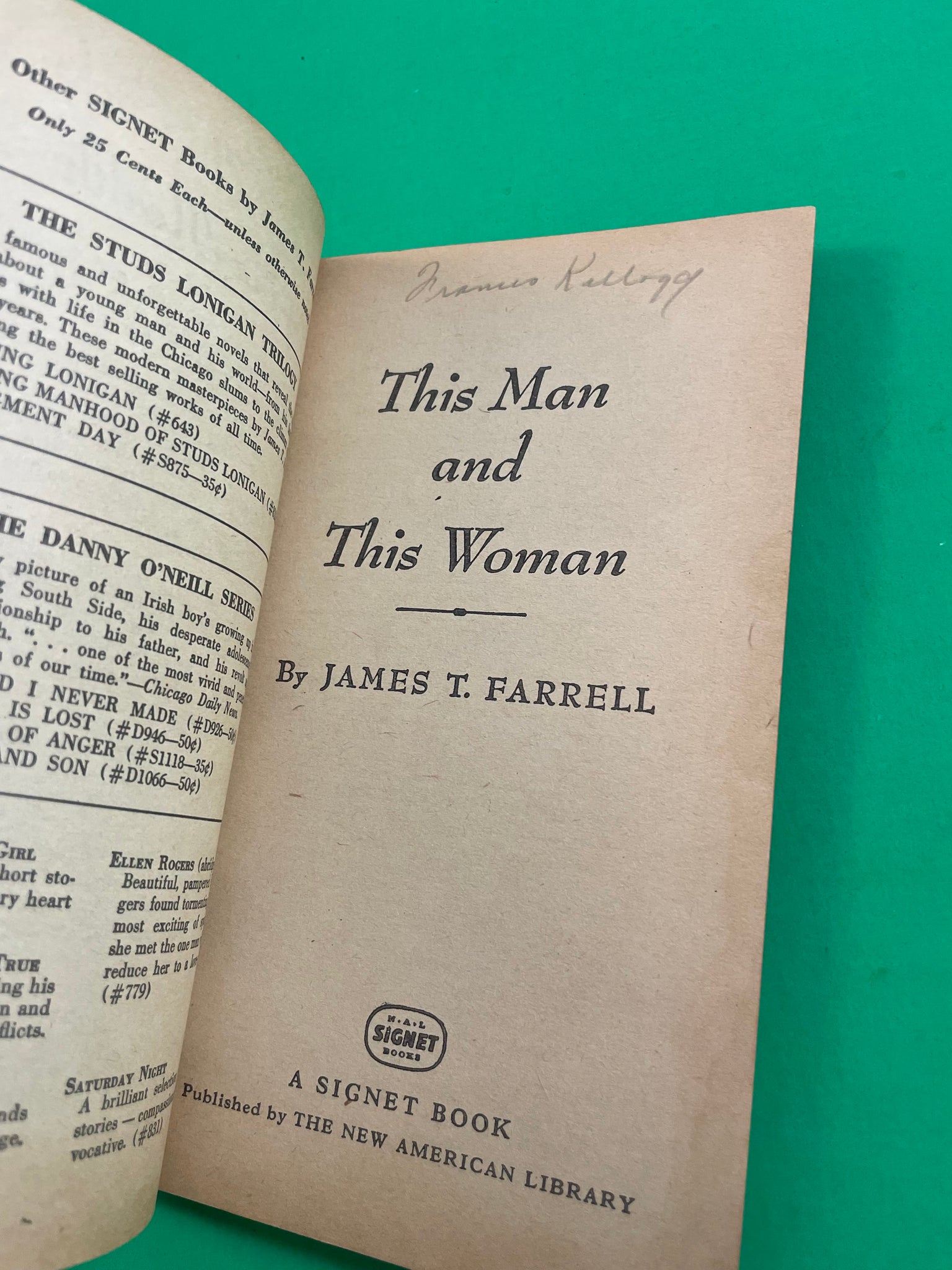 This Man and This Woman James T. Farrell Vintage Signet 1954 Paperback Marriage