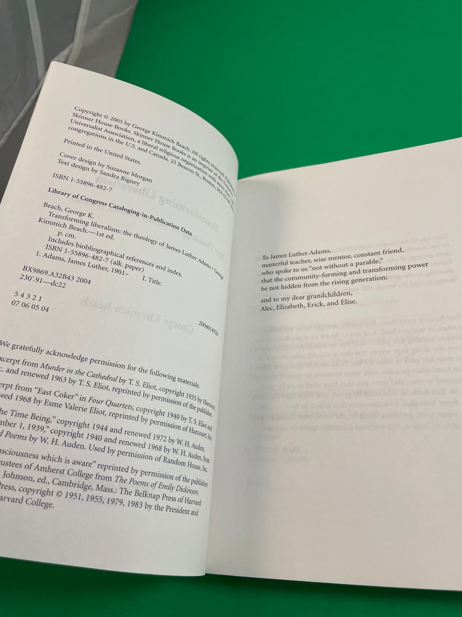 Transforming Liberalism Theology of James Luther Adams by George Beach 2005 TPB